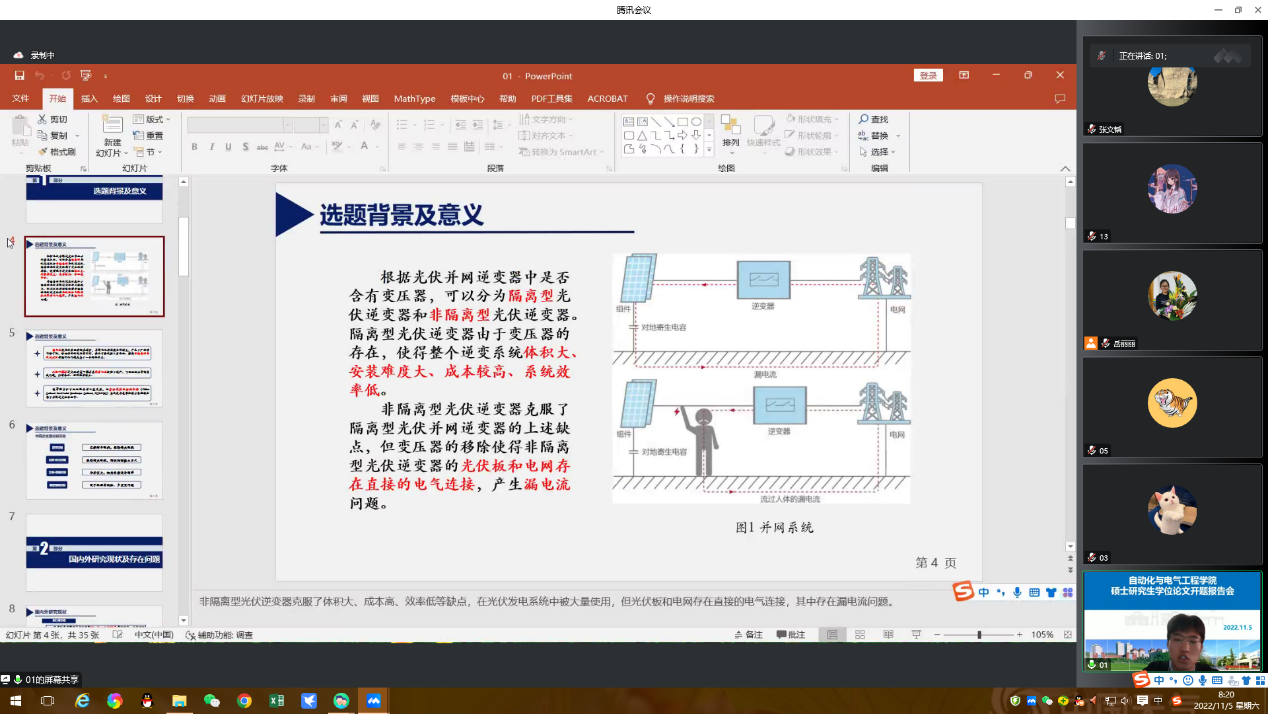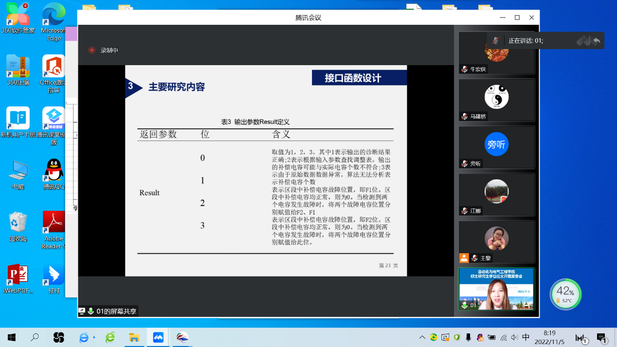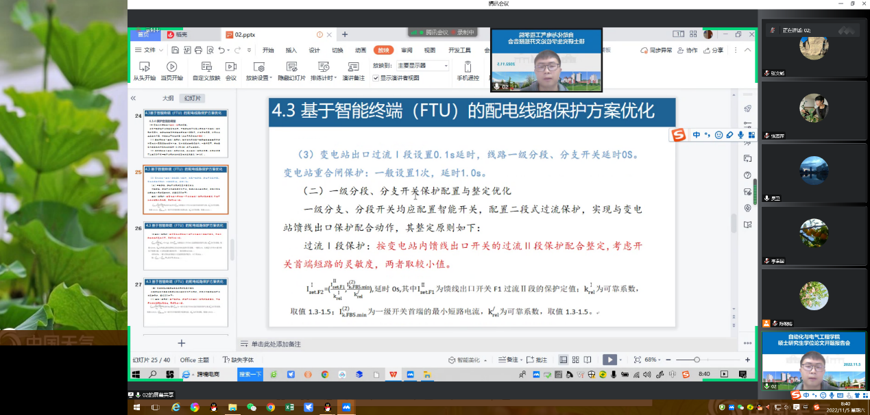11月5日,自动化与电气工程学院采用线上腾讯会议的方式举行了硕士研究生学位论文开题报告会。本次开题报告会按照研究生院的要求实行研究生匿名答辩、导师回避、答辩序号随机等制度,分组按学术型、专业型研究生类别,以及学科相近、学科交叉等方式分8个会场举行。