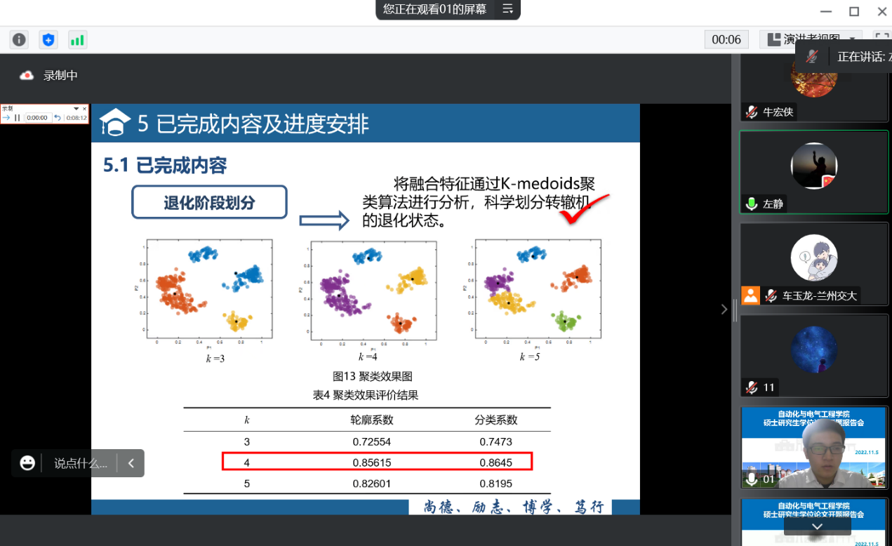 本次开题报告会因学校疫情防控的要求,采用线上云端会议方式举行。答辩过程中全体研究生态度端正,线上答辩会场秩序井然。本次开题报告会的有序高质量开展,确保了硕士研究生论文选题的有效性、可行性和科学性,对于加强研究生培养过程管理、个人能力提升以及培养质量具有良好的促进作用。