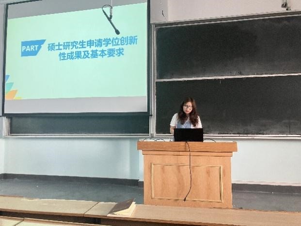 焦蒙同学根据硕士研究生学位创新性成果基本要求,介绍了本院对于研究生毕业的基本条件,以及小论文的写作技巧;最后针对学术不端的案例、行为以及处理方法进行了分享。