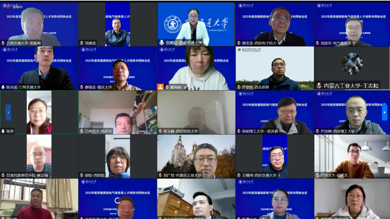 11月12日,2022年度西部高校电气信息类人才培养共同体会议在线上隆重举行。本次会议在西部高校电气信息类人才培养共同体的支持下,由自动化与电气工程学院承办。西安交通大学副校长别朝红教授、兰州交通大学副校长党建武教授、教育部电工电子基础课程教学指导分委员会主任委员王志功教授、教育部电气类专业教学指导委员会副主任委员刘进军教授出席大会并致辞。西部地区25所高校代表150余人参加了会议。会议由自动化与电气工程学院负责人主持。