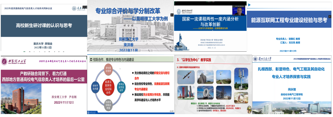 本次会议特邀了重庆大学廖瑞金教授,昆明理工大学束洪春教授,西安电子科技大学郭宝龙教授,西安交通大学刘文凤教授、西安理工大学尹忠刚教授、新疆大学王海云教授、兰州交通大学闵永智教授等7位专家分别做了《高校新生研讨课的认识与思考》、《专业综合评价与学分制改革》、《国家一流课程的“两性一度”内涵分析》、《能源互联网工程专业建设探索》、《产教研融合背景下,着力打通西部地方普通高校电气类人才培养的最后一公里》、《以学生为中心的课堂教学改革方法探索》、《扎根西部,彰显特色,电气工程及其自动化专业人才培养与探索》等人才培养方面的交流报告。专家们围绕新工科建设,以电气信息类人才培养探索与实践为主题,针对一流学科和专业建设、国家一流课程建设、专业虚拟教研室等内容进行了深入交流,分享了各高校的经验,为西部地区高校电气信息类人才培养模式的创新提供了有益的交流和学习。