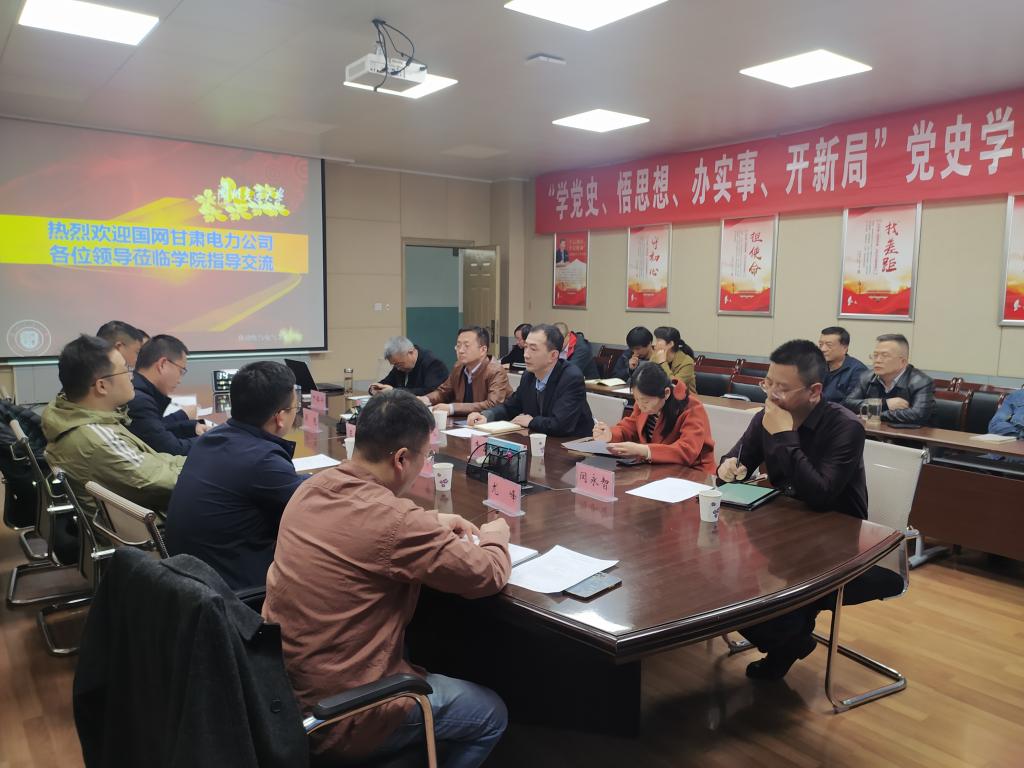 3月3日下午,国网甘肃省电力公司发展事业部三级专家王仕俊、发展事业部项目可研及前期部专责梁魁、甘肃送变电工程有限公司变电工程事业部副经理王定刚、甘肃电通电力工程设计咨询有限公司勘测事业部副经理张中、甘肃科源电力集团检测事业部技术处处长尤峰、甘肃电通电力工程设计咨询有限公司系统规划事业部主任张海生一行6人来自动化学院开展校企合作交流。学院院长陈光武,副院长张振海、牛宏侠,电气系及电工教研室科研骨干教师13人参加了本次会议。