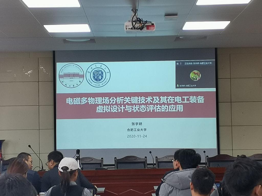 11月24日上午,合肥工业大学张宇娇教授应邀在学院704会议室做了题为《电磁多物理场分析关键技术及其在电工装备虚拟设计与状态评估的应用》在线学术报告。学院教工、19级研究生等90余人参加了此次报告会。报告会由学院副院长张振海主持。