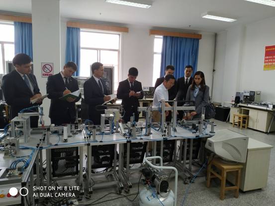 张振海副院长带领土库曼斯坦青年教师团先后参观了学院GE联合实验室、过程控制实验室、工业机器人实验室、电气集中实验室、列车运行控制实验室、高铁信号综合仿真实验室,就实验室的情况作了详细的讲解。土库曼斯坦国立交通通讯大学的教师们对学院的实验系统表现出浓厚的兴趣,并就各实验室的平台建设、实验开设等情况,特别是与新能源和交通智能控制有关的项目等进行了详细的沟通交流。
