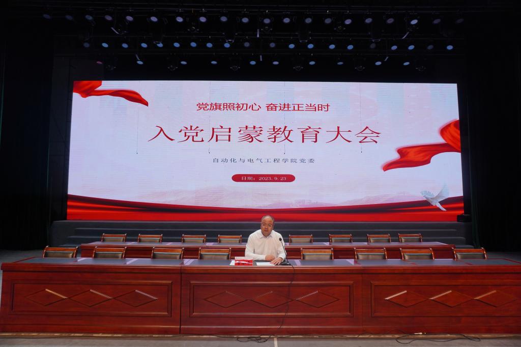 为进一步帮助2023级新生加深对党的认识,深化理想信念教育,引领新生扣好入党“第一粒扣子”,引导新生积极向党组织靠拢。9月23日,自动化学院在学校大礼堂开展了2023级新生入党启蒙教育专题讲座,此次讲座由学院党委书记李小平主讲,学院全体2023级本科生和研究生参加讲座。