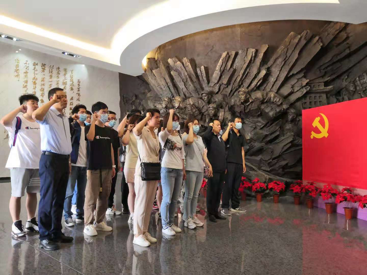 随后,全体党员来到了兰州战役纪念馆,全体党员庄严地举起右手,紧握拳头,面对鲜红的党旗,重温入党誓词,不忘初心、牢记使命,坚定信念。