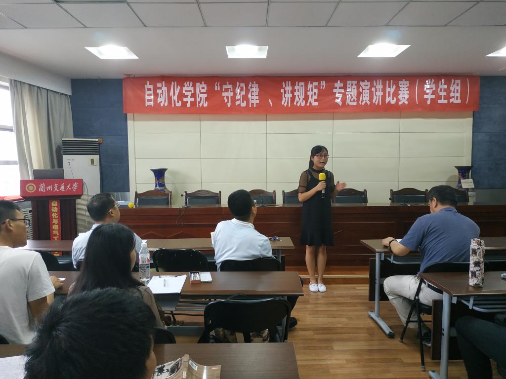 为认真贯彻中央关于全面从严治党精神,不断强化我院师生的纪律和规矩意识,根据《兰州交通大学“守纪律,讲规矩”专题演讲实施细则》精神,2018年7月6日,自动化与电气工程学院分别在学院704、706会议室举办了“守纪律,讲规矩”专题演讲比赛