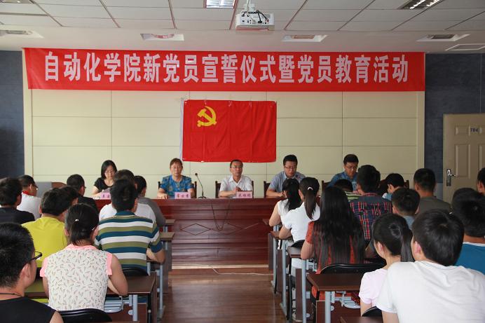 2014年7月1日是中国共产党诞辰九十三周年的纪念日,在这大喜的日子里,自动化学院党委在学院七楼会议室举办了隆重的新党员宣誓仪式和党员教育活动。学院党委书记米根锁教授、全体学生工作人员、各党支部委员、新入党的预备党员100余人参加了活动,会议由学院党委副书记副院长高云波老师主持。