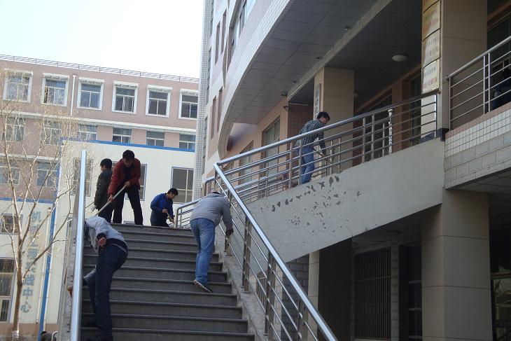 会后,党支部结合学院党员责任区活动,组织全体党员对学院楼207教室、学院大门,以及学院前的草坪,楼梯进行了彻底的打扫。同学们分成几组,团结协作,细心清理了学院楼梯的地面,墙壁和护栏,用自己的行动落实了 “学雷锋,见行动”的活动主题。