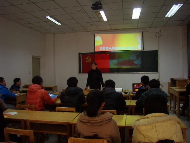 随后召开了以“坚定信仰,提高修养,反思不足,促进提高” 为主题的专题组织生活会。常士香老师首先带头发言,查找了自身存在的不足,和改进措施。在老师的带动下,到会的每位学生党员都勇敢的面对自身存在的不足,认真反思学习、生活、纪律、宿舍卫生等多方面存在的缺点和问题,剖析存在问题的原因,提出改进措施,并希望得到同志的相互监督。全体党员自我批评比较中肯,展开的批评也诚心诚意,使同学们得到了一次深刻的教育,让同学们明确,党员要成为群众的表率,自己的言行要受到群众的监督。