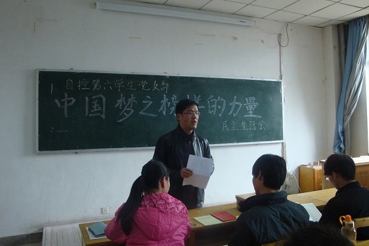 为深入开展党的群众路线教育实践活动,引导学生党员全面、正确地理解开展群众路线教育实践活动的现实意义,进一步加强学生党员对“中国梦”的理解。自动化学院自控第六学生党支部于11月4日开展以“中国梦——榜样的力量”为主题的教育活动。会议由党支部书记陈浩老师主持。