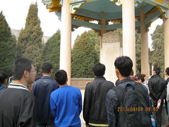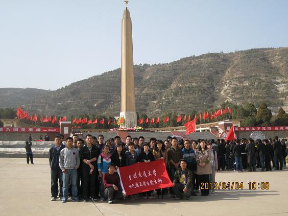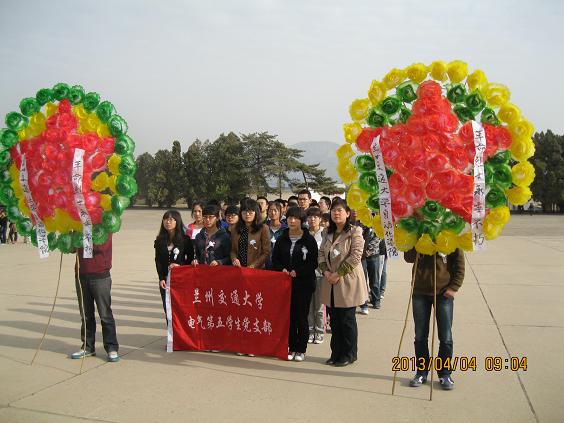 为悼念革命烈士,缅怀先烈的丰功伟绩,自动化学院电气第五学生党支部全体党员于2013年4月4日上午到兰州烈士陵园开展了以“缅怀先烈,继承遗志,圆我中国梦想”为主题的清明节烈士陵园扫墓活动。