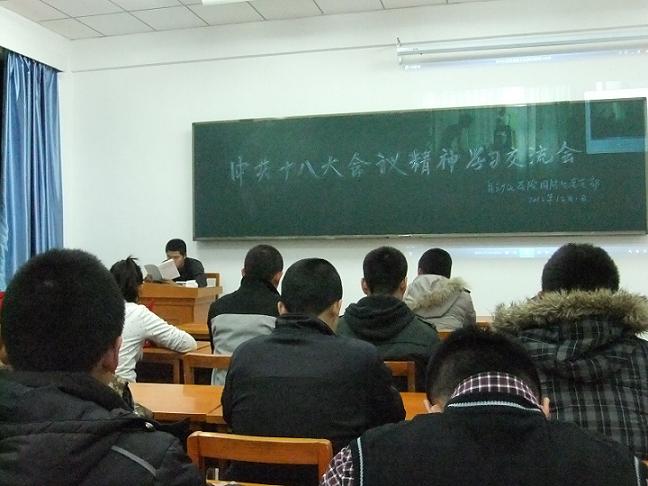 为响应党的“十八大”的号召,以实际行动学习“十八大”精神,加强支部建设和党员党性教育,按照学院党委“学理论铸信念,争做时代先锋”主题教育活动的要求,学院国防生党支部全体党员和积极分子结合本支部的实际,开展了“十八大”精神学习交流会暨打扫党员责任区活动。
