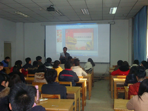 陈浩老师最后要求支部所有党员以学习党的十八大精神为契机,将理论知识与工作生活、专业学习紧密结合起来,不断丰富自身实践,充分发挥学生党员的先锋示范作用,争做优秀大学生。