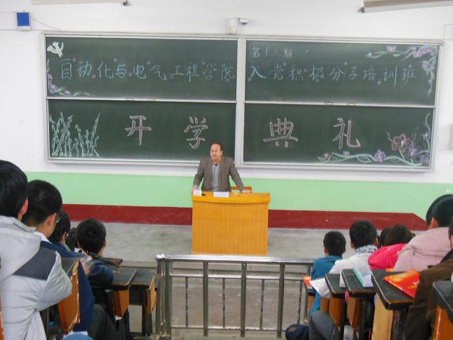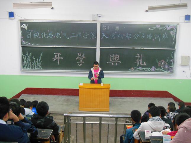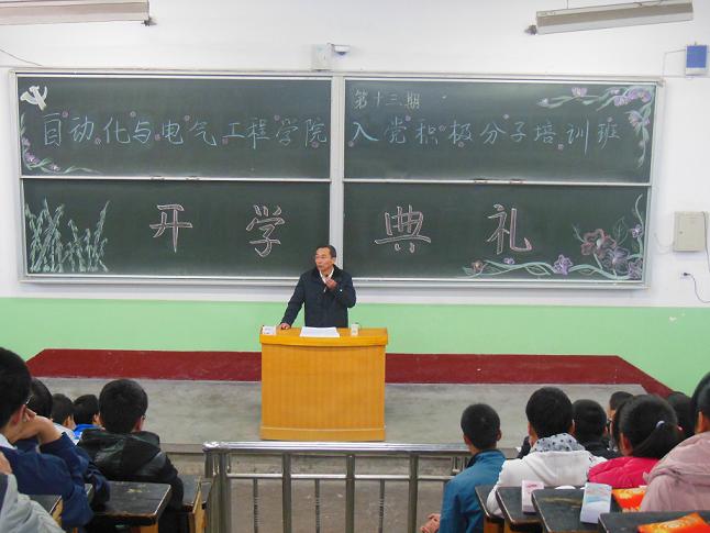 在全国上下认真学习贯彻党的十八大精神之际,自动化学院党委第十三期入党积极分子培训班于2012年11月25日上午在二教2401举行了开学典礼。学院党委书记米根锁教授、副书记副院长高云波老师和党委组织员常士香老师出席了开学典礼。