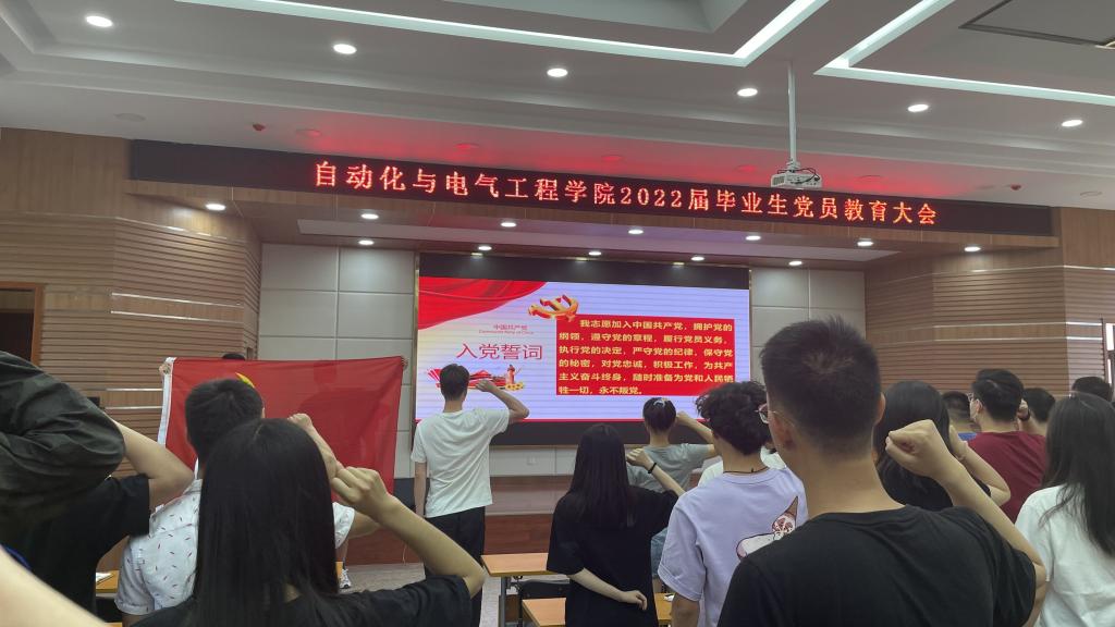 为做好我院2022届毕业生党员离校前的有关工作,加强学院毕业生党员的教育管理,进一步提高毕业生党员党性意识和组织观念,以实际行动和优异成绩迎接党的二十大召开,6月14日下午,自动化与电气工程学院在二教报告厅召开毕业生党员教育大会。学院相关负责人、毕业年级各党支部书记、学院全体2022届毕业生党员340余人参加了大会。