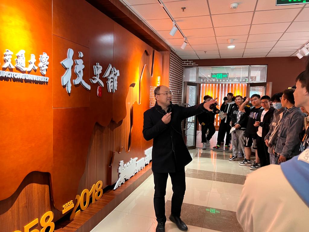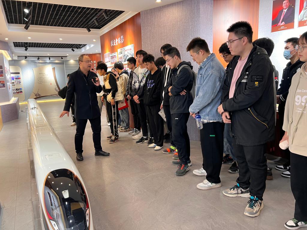 在复兴号动车组模型前,李小平老师向同学讲述了我国高铁技术从引进、消化、吸收到完全自主创新的发展历程,未来高铁的发展趋势以及面临的技术难题。他勉励同学们要学习以林达美、胡春农、沈智扬、孙祺荫、张殿执为代表的老一辈交大人甘于淡泊、勤勉敬业、矢志不渝、身体力行的奉献与实干精神,以赖远明院士为代表的一大批我校杰出校友为榜样,继承和发扬奋发向上、艰苦朴素、刻苦钻研、严谨治学的校风,尚德、励志、博学、笃行,将来为我国铁路事业的发展做出更多、更大的贡献。