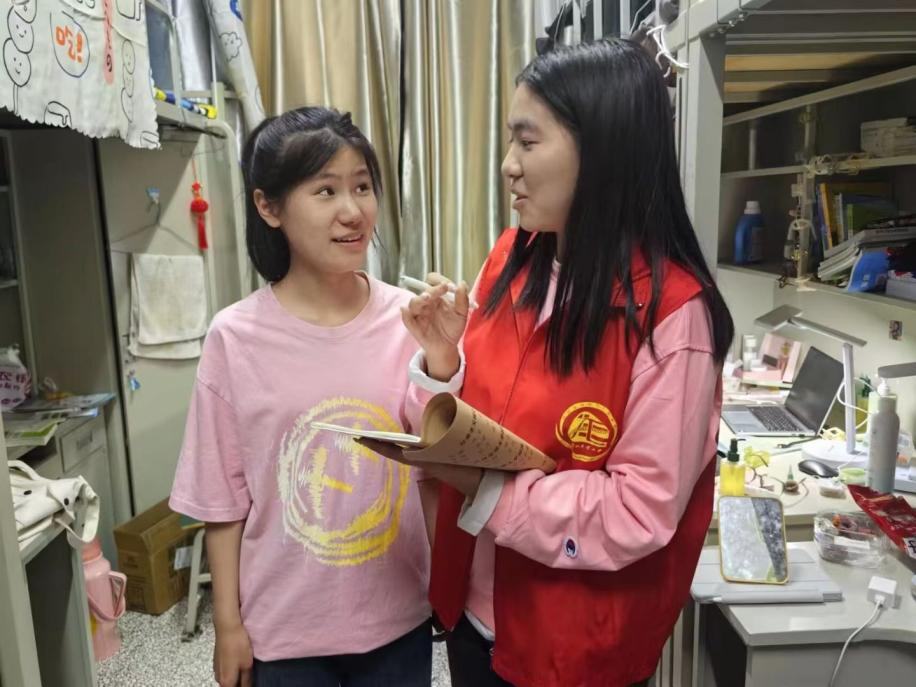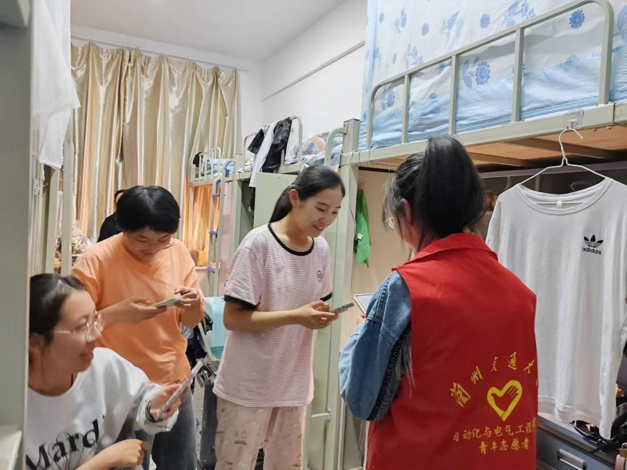 走访过程中,党员同学们和新生们进行了亲切交谈,表达中秋、国庆佳节的美好祝福,也疏导了小萌新们的思乡之情。党员志愿者耐心细致地解答新生们关于社团选择、大学四年课程安排及学习方法、文明宿舍评定、未来工作方向等各类问题,并主动与新同学互留联系方式,以便后期更好的服务新同学。同时提醒新生们要注意预防网络诈骗,注意寝室用电安全。其次,党员同学们在新生队伍中开展入党启蒙,增强新生对党的认识,解答有关入党流程的问题,鼓励有意愿的同学向党组织递交入党申请书。
