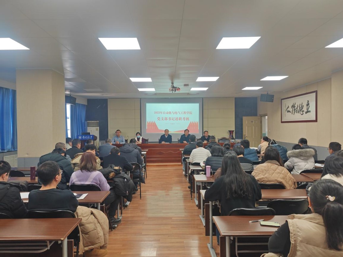 2024年1月4日,自动化与电气学院在学院706会议室召开党支部书记抓基层党建工作述职评议会议。党委书记李小平主持会议,学院党委委员、各党支部书记、全体教工党员、党员代表、群众代表共100余人参加会议。学校党委组织部副部长丁杰列席指导会议。