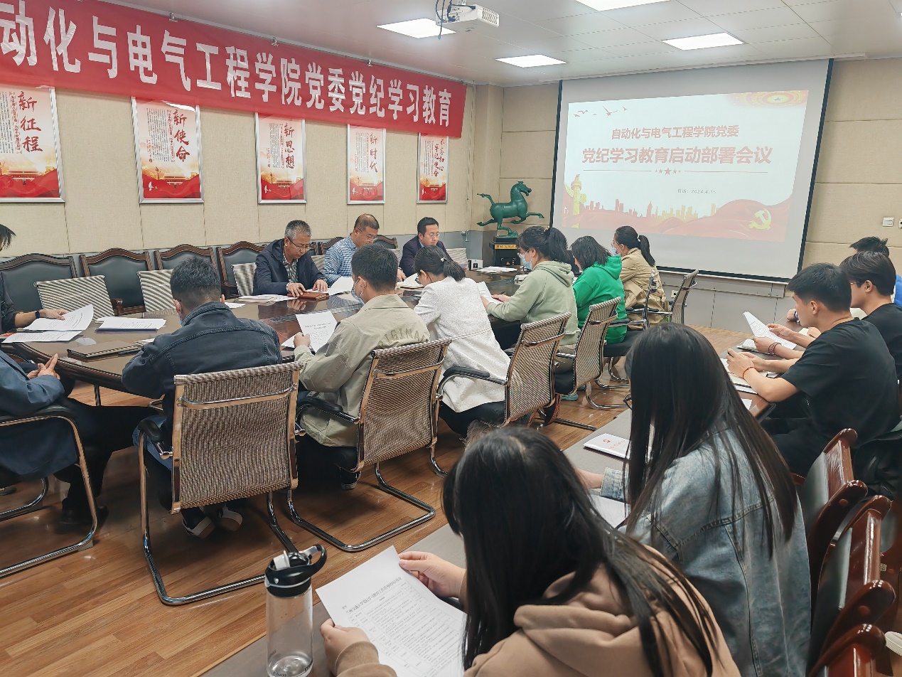 4月15日下午,自动化与电气工程学院召开党委扩大会议,安排部署党纪学习教育。学院全体党委委员、全体教工党支部书记、学生支部书记、科级及以上干部共30余人参加了会议。自动化学院党委副书记、副院长陈浩主持会议并作动员部署。