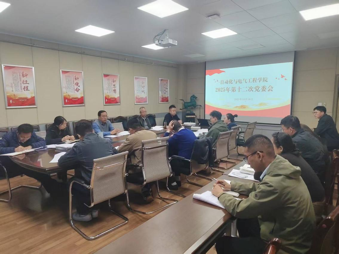 10月30日上午,自动化与电气工程学院在学院706会议室召开2025年第十二次党委会(扩大)会议,部署思想政治与群团工作,推进人才引进与队伍建设。学院党委书记王志荣主持会议,全体党委委员出席,团委书记、学工办主任、研工办主任及全体辅导员列席。