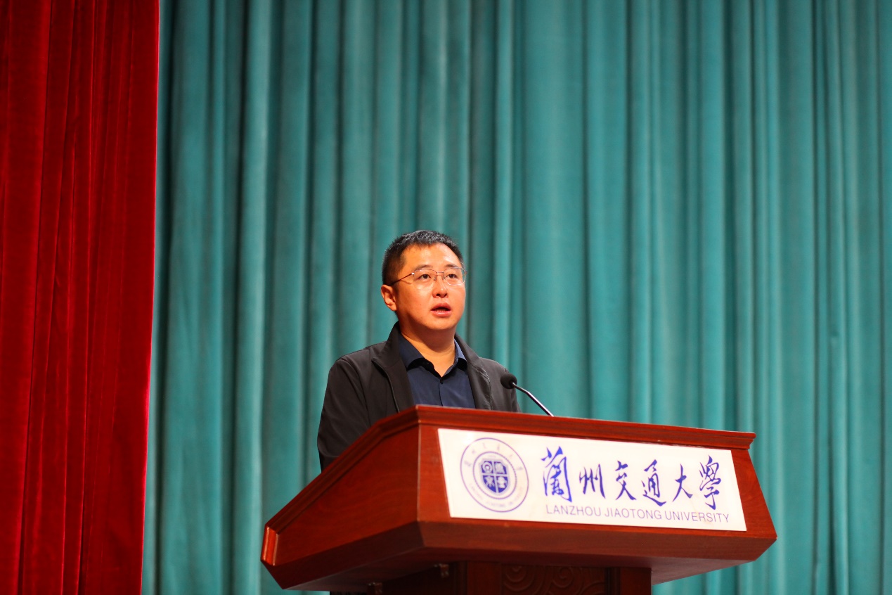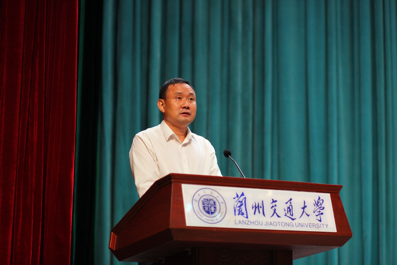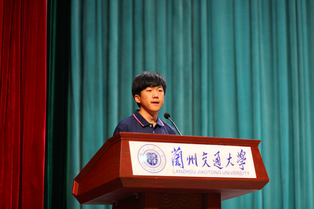 授旗仪式过后,优秀青年校友代表中国铁路兰州局集团兰州电务段副段长(原自动控制(现轨道交通信号与控制)2008届毕业生)潘黎鹏校友进行了发言,他分享了自己四年的求学感悟,结合自己的工作经历和感受,倡导新生们要珍惜在校的美好时光,争做有理想、有抱负的青年,仰望星空、脚踏实地,逐梦未来。