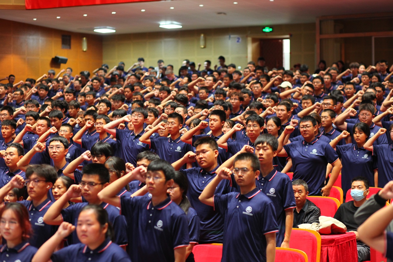 典礼最后,在新生代表刘坤刚同学的带领下,全体新生高举右手,庄严宣誓:“我以青春之名,立鸿鹄之志。在交大的沃土上,秉持“尚德 励志 博学 笃行”的校训,勤奋学习,追求真理。我承诺,不畏艰难,勇于探索。我决心,坚守诚信,尊重他人。我立志,求真求实,追求卓越,为学院争光,为学校添彩!”