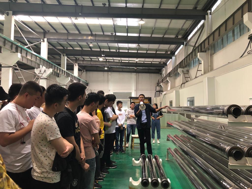 参观过程中,同学们具体了解到“绿色镀膜技术与装备”、“绿色镀膜新材料”、“绿色镀膜新能源”、“全电子化计算机联锁系统”四个方向的工程技术、产业化能力和水平,深刻体会到完善管理制度、培育“自主创新”能力的重要意义。