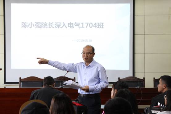 根据学校领导干部深入基层联系学生工作安排,为切实做好大学生成长成才服务工作,5月30日上午,自动化与电气工程学院陈小强院长深入联系班级——电气1704班,参加“读书分享”主题班会并开展座谈交流。活动由班长陈生同学主持,辅导员、班主任及班级全体同学参加。