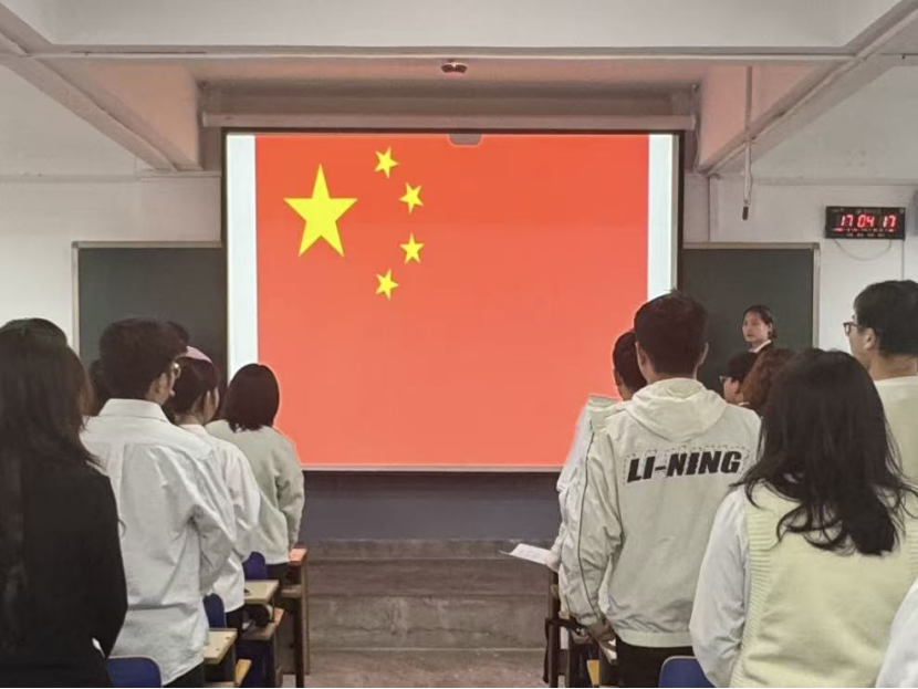 仪式在雄壮激昂的国歌声中正式开启,全体师生肃立致敬,炽热的目光与昂扬的旋律交织,每个人都高声歌唱国歌,眼中有红旗,心中有信念。随后,团籍管理安绎甲同学郑重宣读了本批次新发展团员名单,并对新团员表示热烈的欢迎和祝贺。