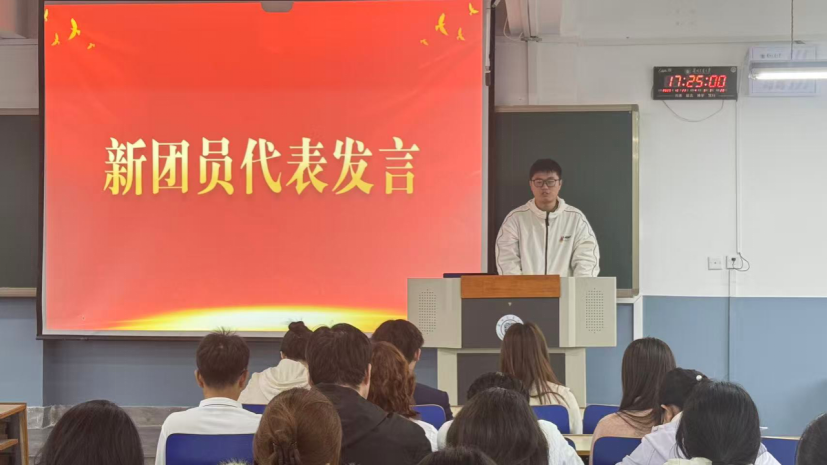 新团员代表南文通同学在发言中表达了加入团组织的激动与自豪。他表示,将在团组织的引领下,不断深化对党的认识,努力提升自我,以实际行动践行入团誓言,争做有理想、敢担当、能吃苦、肯奋斗的新时代好青年,为民族复兴伟业贡献青春智慧。