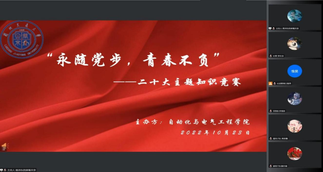 青春孕育无限希望,青年创造美好未来。党的二十大圆满落幕,让我们看到新时代的中国不仅仅是历史悠久的古老国度,亦是朝气蓬勃的青春国家。为使我院莘莘学子更好的了解二十大的内涵与精神,增强同学们矢志不渝的爱国精神和艰苦奋斗的开拓精神,为实现中华民族的伟大复兴继续砥砺前行,自动化与电气工程学院团委于2022年11月12日举办线上“喜迎二十大,奋进新征程”主题知识竞赛活动。