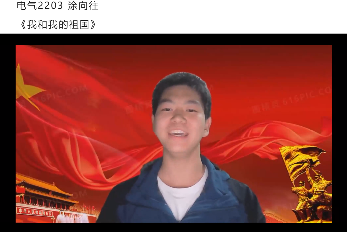 在学生会的精心组织下,经过前期的评选和竞争,共有12位参赛曲目进入复赛环节。《我和我的祖国》、《没有共产党就没有新中国》、《少年中国说》……一首首耳熟能详的歌曲呈现在比赛直播中,参赛者声情并茂地唱响红色经典,抒发时代豪情,歌颂盛世繁华,展现青年少年风采。《明天你好》、《隐形的翅膀》、《孤勇者》等青春励志的歌曲则唱出了疫情当下的广大学子积极向上的心态和乐观应对学习生活困难的信心。一首首歌唱祖国、热情洋溢的歌曲久久在耳边回荡,为祖国祝福,祝福伟大的祖国更加繁荣富强;为祖国歌唱,歌唱出泱泱华夏的明日华章。最终,电气2203班涂向往同学以《我和我的祖国》荣获冠军,电气2202班王冠文同学获得亚军,信号2201班汤沁颖同学获得季军。