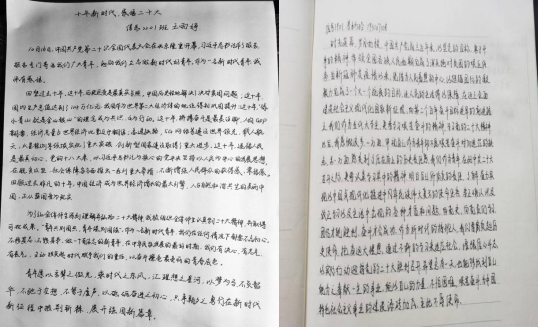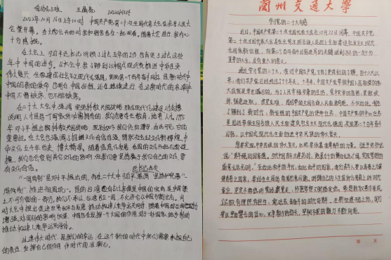 在此次活动中,同学们紧紧围绕党的二十大的精神,总结党的光辉历史成就,用优秀的文笔写出了自己对国家这十年光辉历程的自豪以及敬佩,表达出“为天地立心,为生民立命,为往圣继绝学,为万世 开太平”的理想信念,各位同学也在自己的作品中上传了自己观看二十大的照片,照片中,每一位同学都全神贯注,认真聆听党的二十大报告,而每一个在屏幕前挺直腰杆的同学,都是中华民族美好的未来。