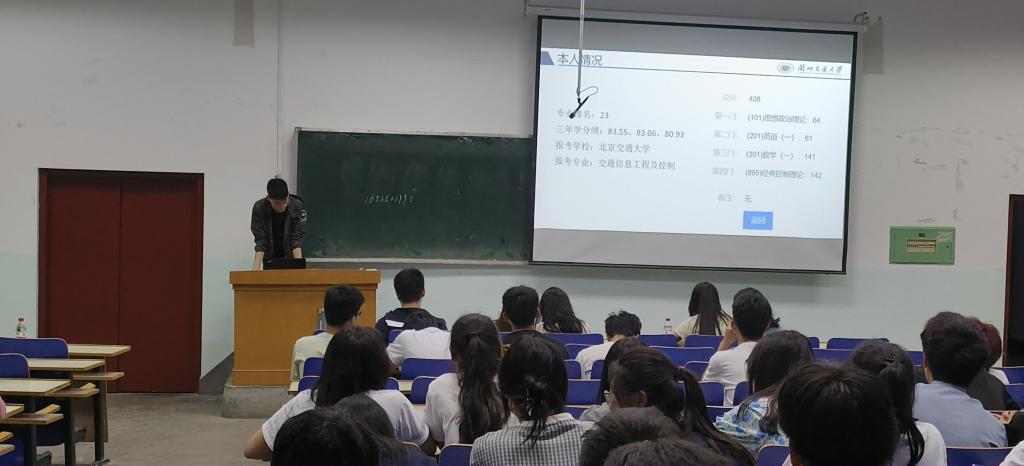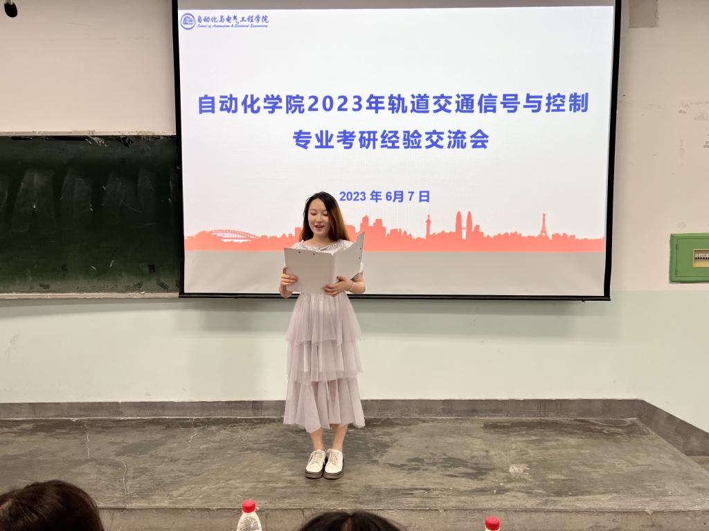 为了激发2022级同学们的学习积极性,对考研有更深入的了解,进一步落实学院考研学生“传帮带”的优良传统,自动化与电气工程学院于2023年6月7日晚19:30在七教1802举办了轨道交通信号与控制专业考研经验交流会。本次交流会邀请了19级信号专业的王子康、方诗奕、袁郡遥、李相龙、江婧、贾静雯六名已保研或考研的优秀学生代表进行交流发言,22级信号四个班的同学参加了此次活动。