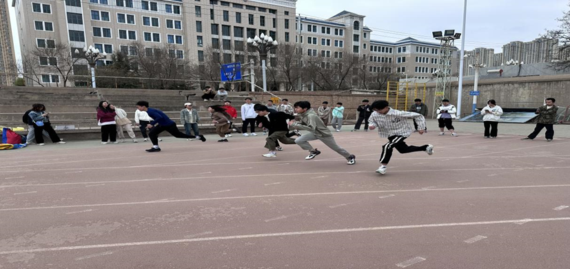 运动会现场气氛热烈,欢声笑语此起彼伏。比赛项目设置丰富多样,既有考验团队协作的“四人五足”、“旱地龙舟”,也有考验个人反应与速度的“50米折返跑”,还有充满趣味性的“袋鼠跳”等。每个项目都吸引了众多同学积极参与,他们或奋力冲刺,或默契配合,展现了大学生的青春活力和积极向上的精神风貌。