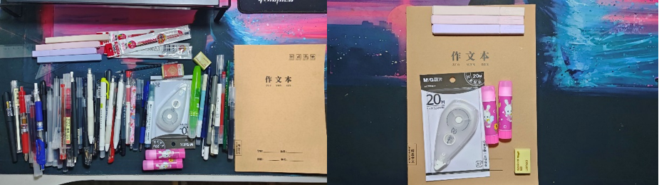 活动现场,参与人员捐赠了大量的文具用品,包括修正带、中性笔、橡皮、铅笔等。这些文具将为社区孩子们的学习提供有力的支持,激发他们的学习热情。活动现场气氛热烈参与人员积极地献出自己的爱心与奉献,志愿者们忙碌地收拾着收集到的文具,并做好记录。一支支崭新的中性笔整齐地摆放着,橡皮擦、笔记本等等。这些文具不仅质量上乘,而且种类丰富,满足了孩子们不同的学习需求。在活动过程中,我们看到了许多令人感动的场景。张同学特意拿出自己特意购买的作文本和修正带,毫不犹豫地捐赠出来;还有李同学带着舍友一起捐赠文具,捐赠出了一盒油画棒和几支崭新的中性笔。志愿者们热情地接待每一位捐赠者,认真记录每一件文具的信息,并向他们表示衷心的感谢。为了确保文具的质量和适用性,志愿者们还对收集到的文具进行了仔细的检查和分类。