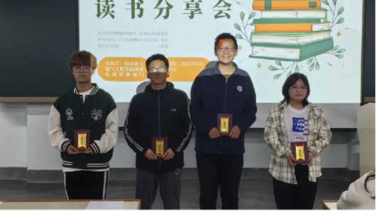 “如果不读书,行万里路,也只是个邮差”。读书使中华民族的精神世界变得越来越厚重、深邃。为进一步提高学院学生的读书意识,展现学生的文化涵养和精神风貌,同时也为丰富同学们的课后生活,自动化与电气工程学院团委社团管理部门于4月29日在7教1401举办以“一程山路,与书为友”为主题的读书分享会。