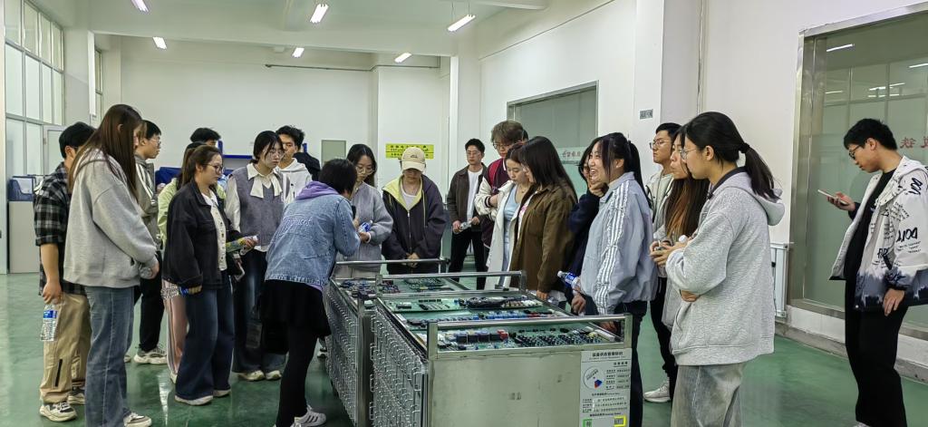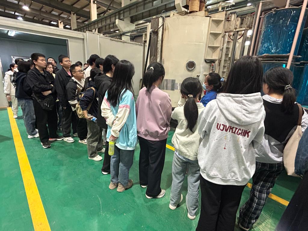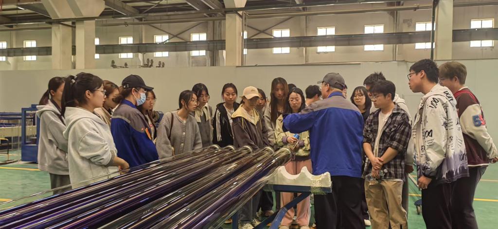 此外,师生们还走进大成公司镀膜设备生产车间,近距离观摩先进镀膜技术的生产流程与应用场景。大成公司工作人员结合实例,介绍了镀膜技术的运作原理和在新能源领域的重要应用,进一步拓宽了同学们对专业交叉领域的认识。