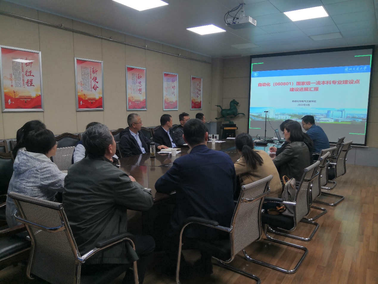 会上,自动化专业负责人杨剑锋对标《普通高等学校本科专业类教学质量国家标准》《普通高等学校本科教育教学审核评估指标体系(试行)》《工程教育认证标准》《兰州交通大学一流本科专业建设自评表》,分别从专业定位与特色、师资队伍与教学水平、课程体系与教学资源、人才培养质量、持续改进机制等方面做了逐一汇报。随后,专家组针对汇报内容进行了提问和质疑。