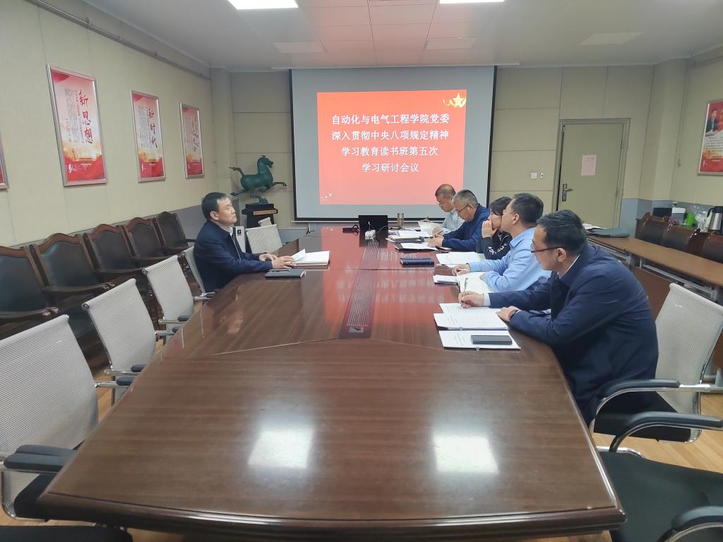 4月28日上午,自动化与电气工程学院党委在学院706会议室组织开展深入贯彻中央八项规定精神学习教育读书班第5次学习研讨。学院全体党委委员参加了交流研讨会,会议由学院副院长、副书记陈浩主持。