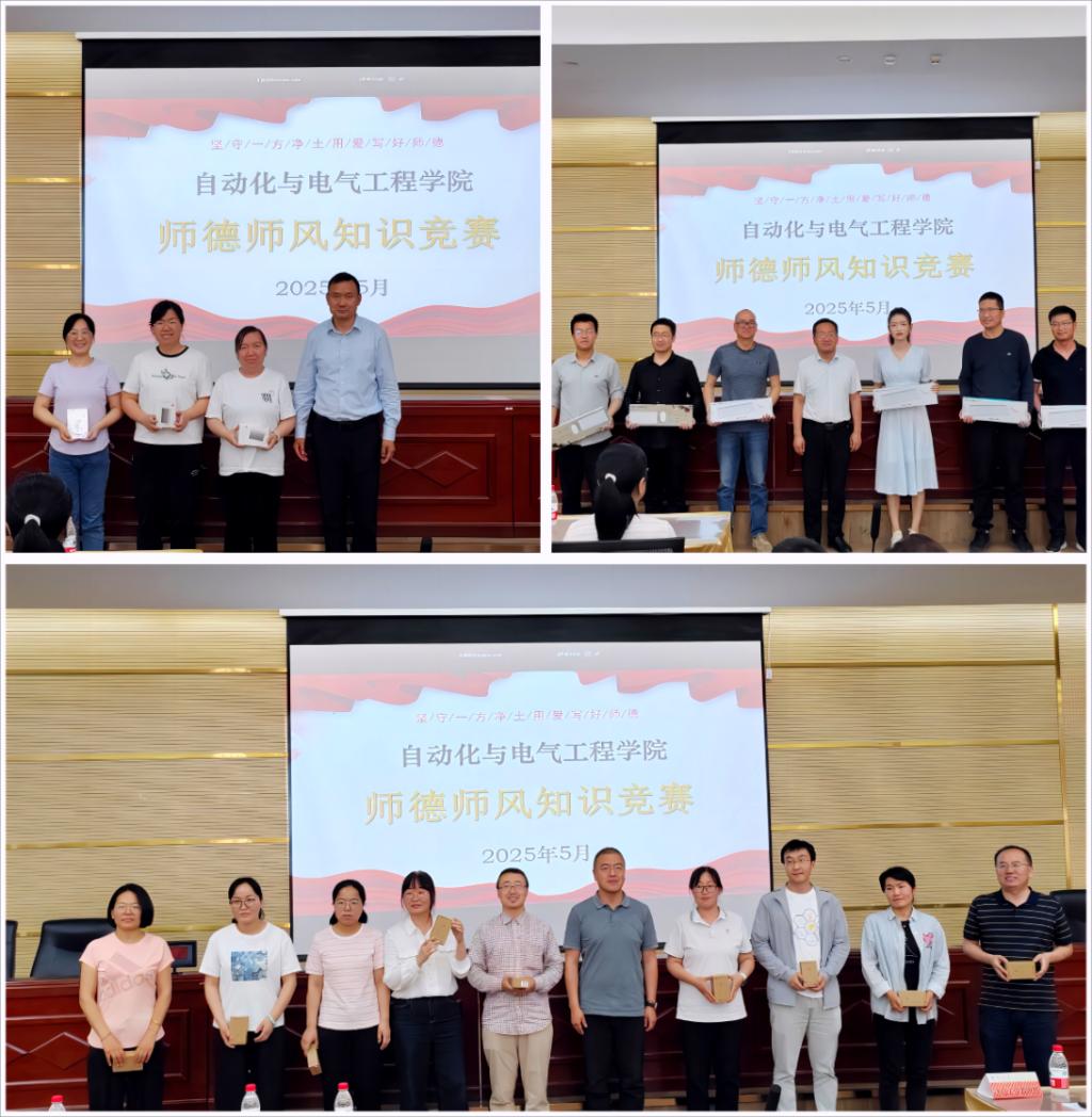 5月29日下午,自动化与电气工程学院在笃行楼中翼报告厅成功举办师德师风知识竞赛。学院领导全程指导并担任评委,全院在校教职工90余名教师参加活动。