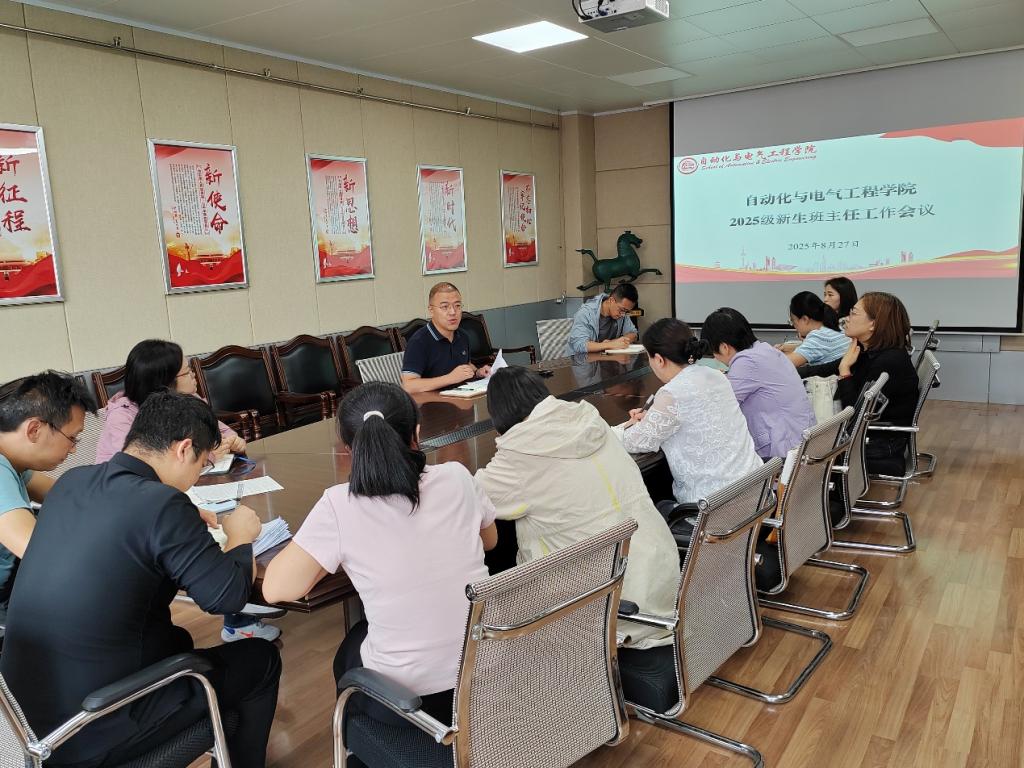 为扎实做好2025级新生入学工作,8月27日下午,自动化与电气工程学院于706会议室召开2025级新生班主任工作会议。学院党委副书记、副院长陈浩,全体2025级新生班主任及辅导员参加会议,会议由学工办主任马腾主持。