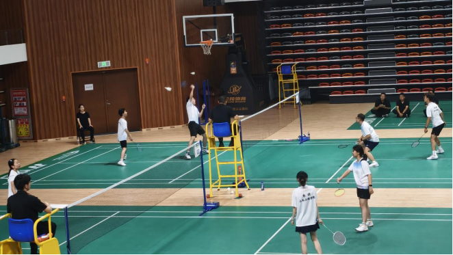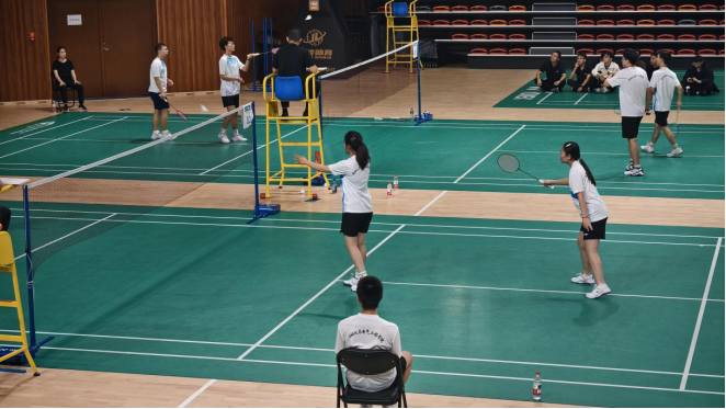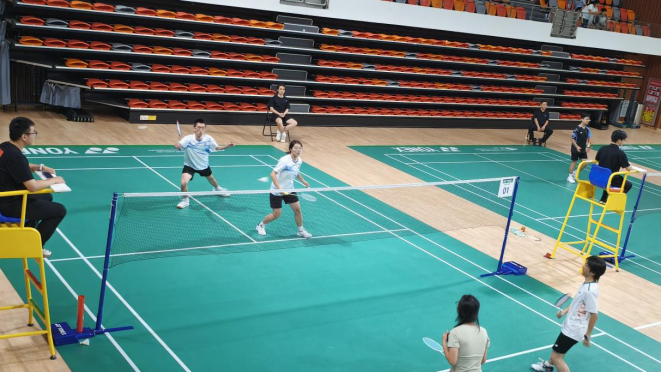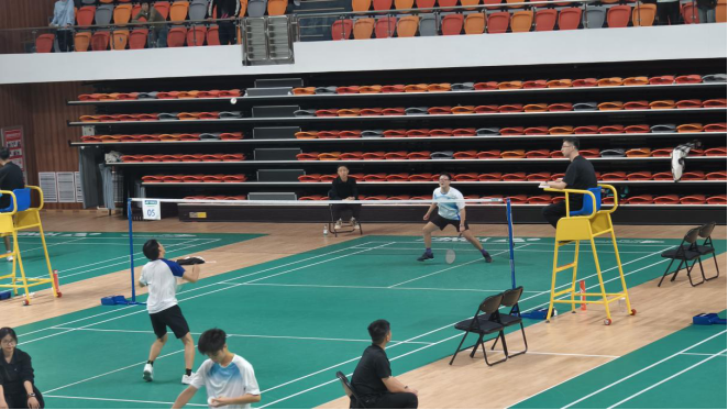 比赛当日,学院代表队在北校区体育馆 1 楼学生组赛场展现出碾压式实力,男女单项赛事均以绝对优势夺冠,为团体赛胜利奠定坚实基础。女双与男双赛事同样亮点十足。女双组合配合默契无间,网前拦截与后场突击形成完美互补,面对对手的战术调整能迅速回应,每一场比赛都以流畅的协作让胜利毫无悬念;男双组合则凭借强劲的力量与精准的落点控制,在赛场上屡屡打出精彩的攻防转换,无论是第一阶段的循环赛还是第二阶段的淘汰赛,均以压倒性优势晋级,最终拿下男双冠军。