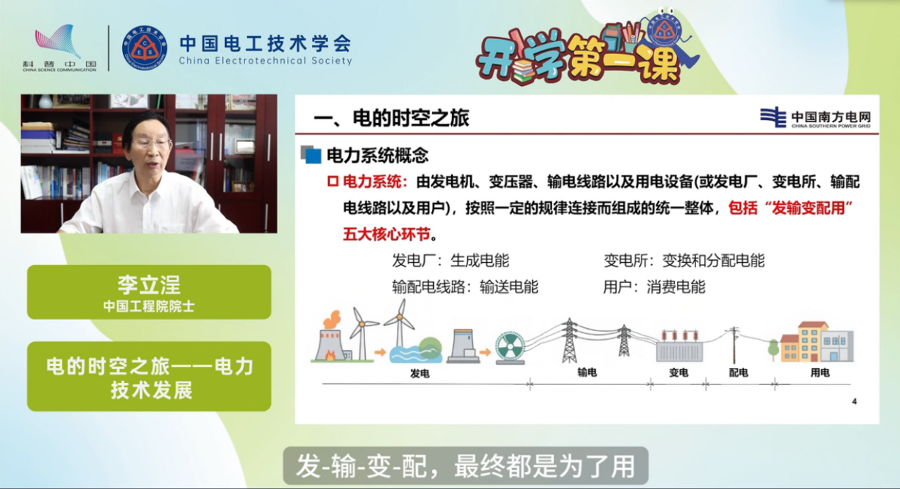 本次“开学第一课”线上科普活动由科普中国、光明网全程直播,特邀中国工程院李立浧院士、北京航空航天大学雷银照教授、国家能源智能电网(上海)研发中心朱淼副主任、西安交通大学电气工程学院张冠军教授、河北工业大学徐桂芝教授、哈尔滨工业大学电气工程及自动化学院辅导员宋宏宇以及哈尔滨工业大学电气工程及自动化学院2023级本科生代佳鑫7位电气工程领域的院士、专家、老师和学生分别从电力技术发展、中国电气发展史、电气化与科学精神、电气专业前沿技术知识、电气专业就业方向和学习生活等话题进行了精彩的分享,重点面向大学新生普及电气工程专业领域专业知识,共同学习科学精神和科学家精神,发现电气之美、体验电气之荣光、畅想电气之未来,把握好大学这个人生发展的黄金阶段。