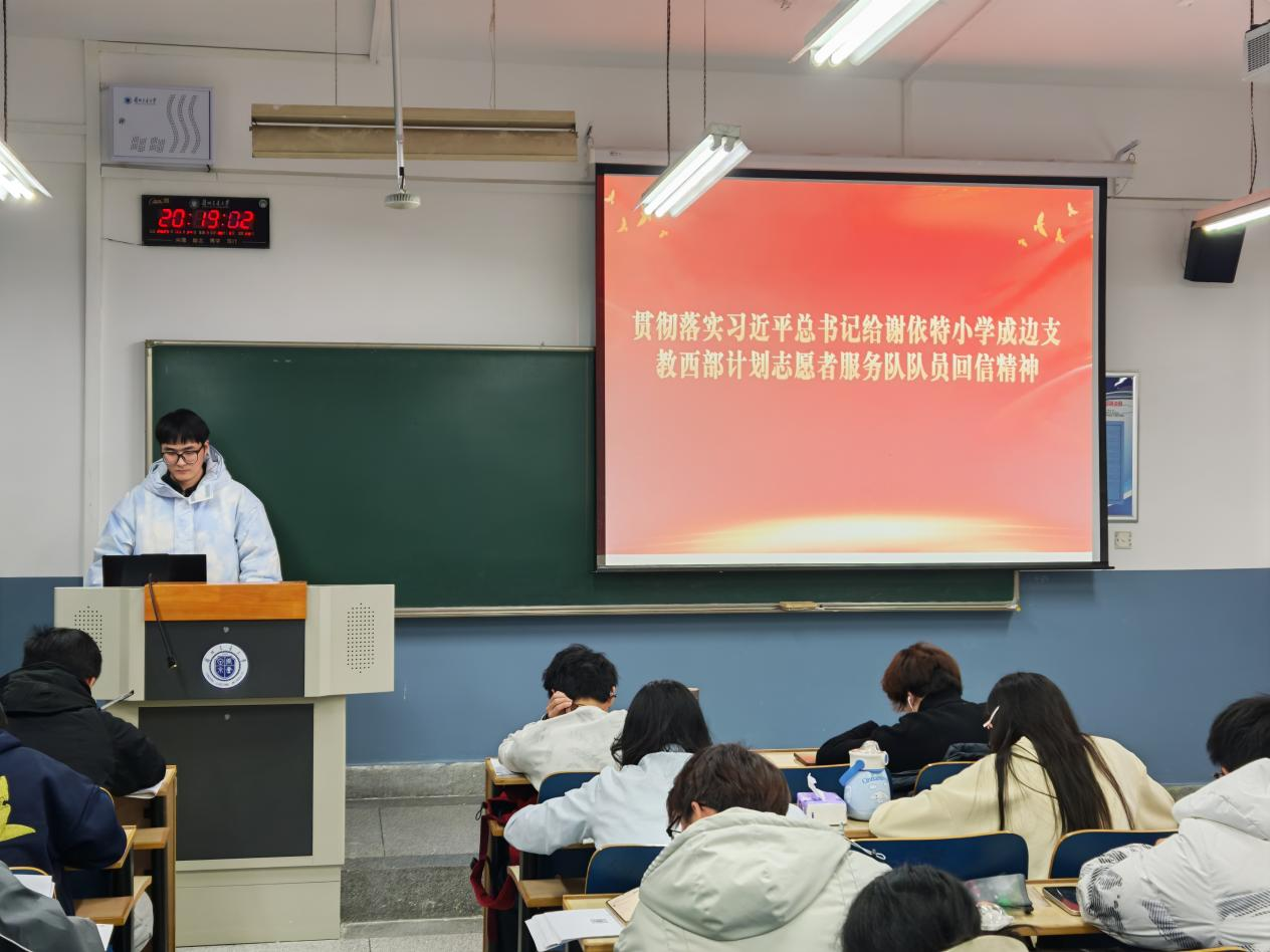为深入学习贯彻习近平总书记给新疆克孜勒苏柯尔克孜自治州阿图什市哈拉峻乡谢依特小学戍边支教西部计划志愿者服务队全体队员的重要回信精神,引导广大青年学子坚定理想信念、厚植家国情怀,自动化与电气工程学院团委组织各专业学生开展“学习回信精神,勇担青春使命”专题学习会。