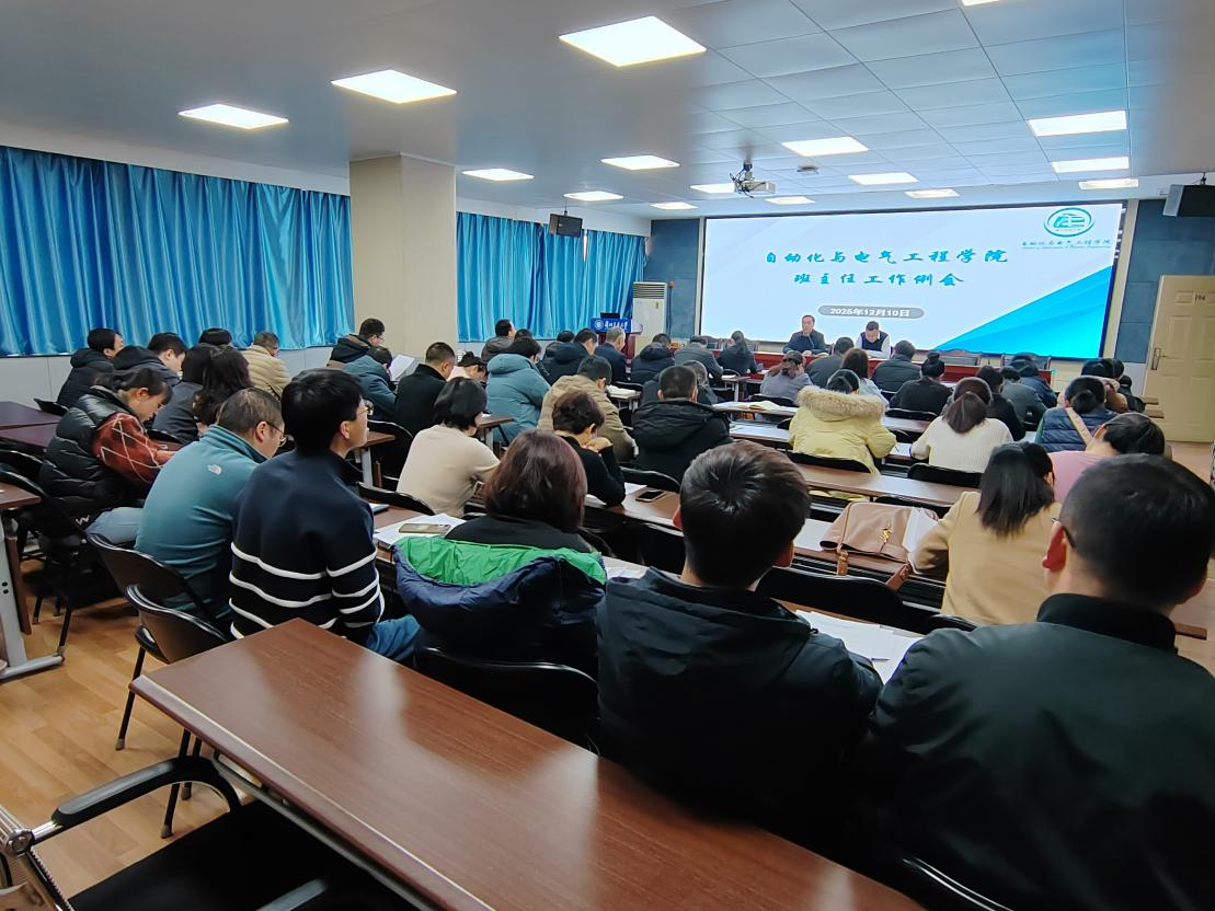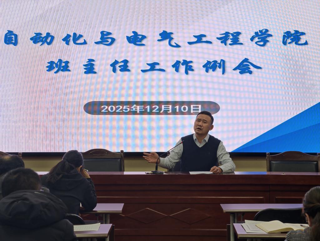 为深入贯彻落实学校学生工作要求,夯实育人基础,提升工作实效,2025年12月10日下午,自动化与电气工程学院于704会议室召开全体班主任工作会议。学院党委书记王志荣主持会议。院长汤旻安、副院长牛宏侠,全体本科生、研究生班主任及辅导员参加会议。