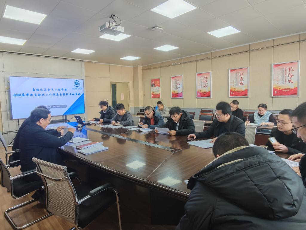 为深入贯彻和全面落实学校关于毕业生就业与征兵工作的相关要求,扎实推进2026届毕业生高质量充分就业,同时积极响应国家征兵号召,引导学生投身国防建设,自动化与电气工程学院于2025年12月25日在学院706会议室召开2026届毕业生就业工作调度会暨征兵动员会。学院党委书记王志荣、副书记、副院长刘巍、全体辅导员和毕业生班主任参加会议。