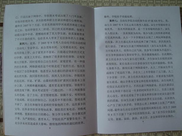 从今年3月份开始,根据学院学生工作部署和学生工作推进计划,学院党委副书记、副院长张玉成组织学工办全体辅导员编写《学生教育警示录》一书,该书从近几年在我校我院发生的真实案例中,遴选了几十个典型案例,分成八大类型,并根据每个类型的基本案情,逐一进行剖析点评,该书案例中的当事人,或沉迷于网络不能自拔,或不勤奋学习,在考试中将希望寄于一时的侥幸,以求蒙混过关;或忽视世界观的改造,不能严格要求自己,做出一些与大学生形象不相符的行为,不仅违反了社会道德规范,而且违反了校纪校规,甚至是国家的法律法规。读之触目惊心,令人警醒深思。