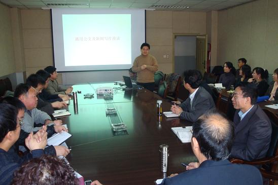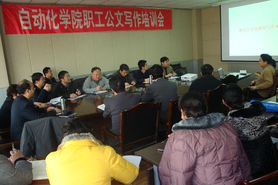 2009年12月17日下午,自动化学院在7楼会议室举行了关于通用公文与新闻写作的专项培训,培训邀请了中文学院王强老师主讲,学院副书记、副院长张玉成、各系主任、部分老师参加了此次培训。